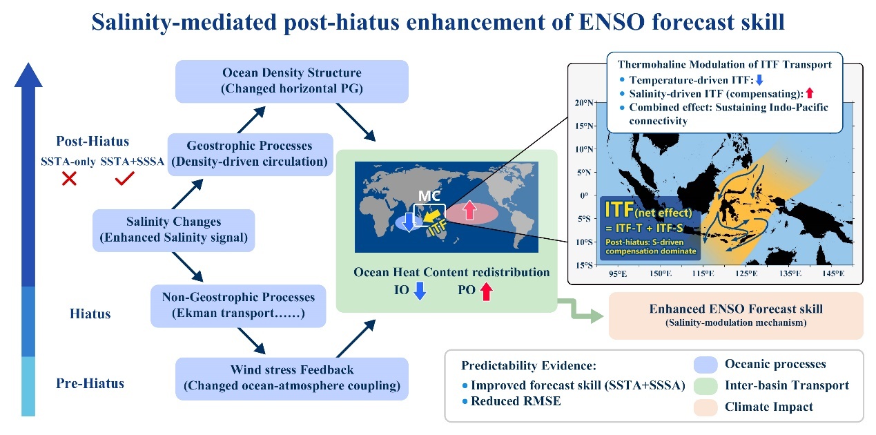 "The ITF has transitioned from a passive conduit to an active modulator of ENSO evolution," said Prof. WANG Jing, first author of the study. Incorporating salinity into prediction systems can significantly improve forecast skill, especially at longer lead times.